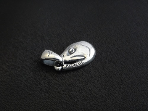 鼻曲がりの厳つい鱒をモチーフ。透かし彫りで奥行を出すことにより鱒の武骨さを表現。口にバチカンを噛ませペンダントトップにしました。