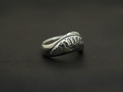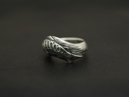 シーンを選ばないプレーンなリングにヤマメを彫り込みました。リングと一体化しながらもヤマメの動きを最大限に表現、指なじみも抜群です。