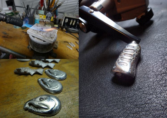 | 2011 | 東日本大震災の影響で自身の工房も使用出来なくなり、創作活動もままならない中、生きるとは何かを改めて考える。 工房復旧後、真っ先に手がけたのが大好きな鱒の造形だった。 「釣りに行けない時でも、身近に鱒を感じられたら…」 その想いから、Fishtail silverをスタート。 |